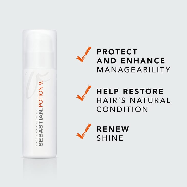 Ravitse ja muotoile hiukset Sebastian Professional Potion 9 -tuotteella. Tämä ammattimainen hiusmuotoilutuotteen ja syvähoitoaineen yhdistelmä sisältää 9 kasviperäistä uutetta, jotka auttavat palauttamaan menetetyn kosteuden ja antamaan piristyneen ja terveemmän ulkonäön hiuksiin. Potion 9 -tuotteen ansiosta hiukset on helppo muotoilla eri tyylisiksi, ja se palauttaa hiusten luonnollisen kunnon ja palauttaa kiillon.