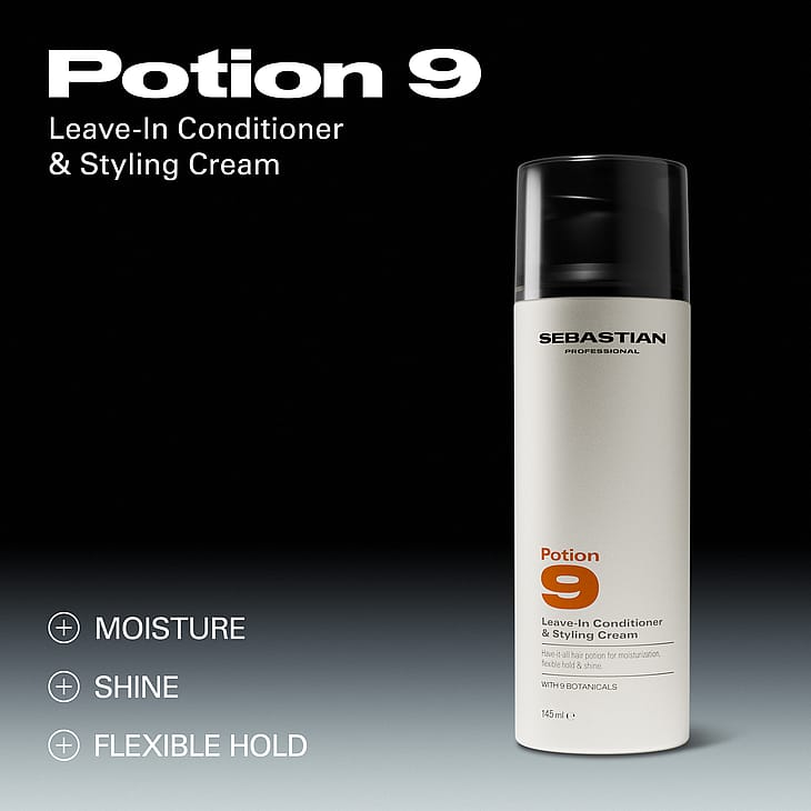 Sebastian Professional Potion 9 Leave-In Conditioner & Styling Cream on ikoninen alkuperäiskoostumus, joka sisältää 9 kasvipohjaista uutetta – hybridi hoitavasta leave-inistä ja muotoiluvoiteesta, joka antaa joustavaa pitoa, kosteutusta ja kiiltoa. Täydellinen käytettäväksi yksinään tai sekoitettavaksi muiden tuotteiden kanssa oman muotoilucocktailin luomiseksi. Korostaa hiusten muotoa ja rakennetta samalla, kun hiukset säilyttävät luonnollisen liikkeensä.