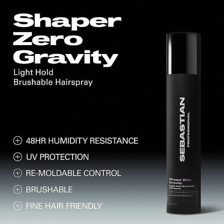 Sebastian Professional Shaper Zero Gravity Light Hold Hairspray on muotoileva suihke, jolla on kevyt pito ja joustava hallinta, antaen lähes painottoman tunteen. Se sopii hienoille hiuksille ja luo harjattavan, liikkuvan tyylin 24 tunnin kosteudenkestolla ja UV-suojalla.