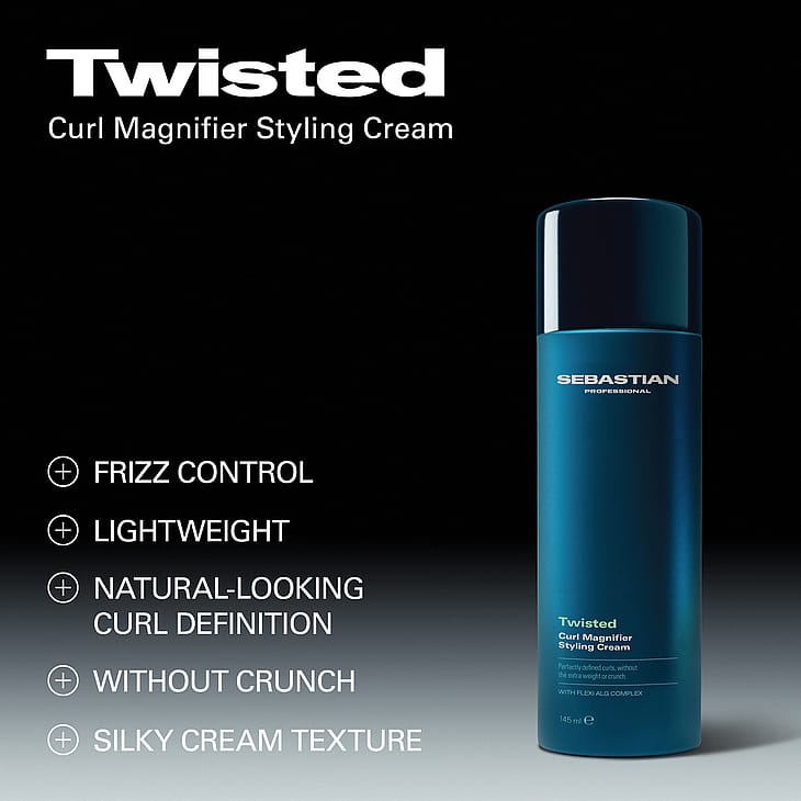 Sebastian Professional Twisted Curl Magnifier Styling Cream on kevyt ja silkkinen muotoiluvoide, joka antaa luonnollista määritelmää ja pörröttömiä kiharoita pehmeällä liikkeellä. FLEXI ALG™ Complex antaa kiharoille ja aaltoileville hiuksille joustavan tunteen, samalla kun kiharat määrittyvät ilman, että ne tuntuvat raskailta tai haurailta.