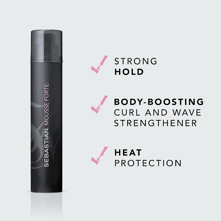 Volyymia ja hallittavuutta Sebastian Professional Mousse Forte- vaahdolla. Tämä ammattimainen muotoilutuote antaa voimakasta tukea ja tehostaa kiharoiden tuuheutta jättäen hiukset pehmeiksi. Sebastian-muotovaahto ja sen pörröisyyttä hillitsevä vaikutus auttavat vahvistamaan ja hallitsemaan laineita ja kiharoita suojaten samalla hiuksia lämpövaurioita vastaan.