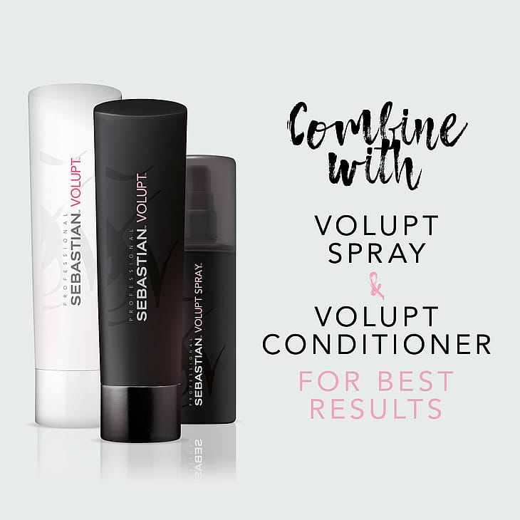 Tehosta tuuheutta ja syväpuhdista ohuet hiukset Sebastian Professional Volupt -shampoolla. Pehmentäviä hiukkasia ja luonnollista bambu-uutetta sisältävä ammattimainen shampoo jättää hiukset tuuheiksi ja pehmeiksi. Väriä suojaava Sebastian-shampoo on suunniteltu antamaan täyteläisemmän ulkonäön ja keveyden hiuksiin tyyliä tehostaen.