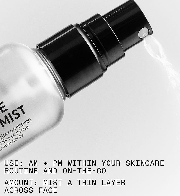 Pidä pulloa 20 cm etäisyydellä kasvoistasi, paina suihkepäätä ja suihkuta tasaisesti koko kasvoille. Käytä puhdistetulle ja kuivalle iholle pesun jälkeen. Sopii käytettäväksi liikkeellä – suihkuta paljaalle iholle tai meikin päälle virkistämään ja kosteuttamaan.