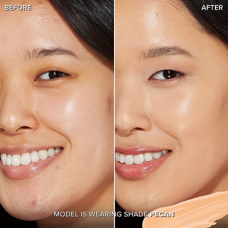 Tämä täyteläinen, seerumimaisen kevyt peitevoide levittyy iholle vaivatta ja peittää epätasaisuudet 24 tunniksi sekä häivyttää tummat silmänaluset kosteuttavaa hyaluronihappoa, aloenlehtiuutetta, daikoninsiemenuutetta ja skvalaania sisältävällä koostumuksellaan. Vedenkestävä koostumus häivyttää väsymyksen merkkejä ja epätasaisuuksia ja lisää luonnollista hehkua, jotta näytät niin luonnollisen virheettömältä, että voisi luulla, ettei sinulla ole meikkiä lainkaan.
