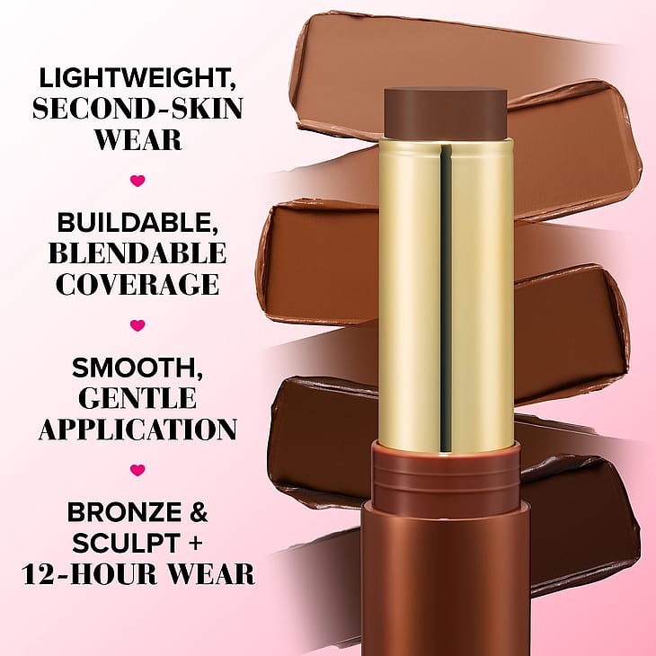 Too Faced Chocolate Soleil Multi-Use Creamy Bronzing & Sculpting Stick antaa ihollesi luonnollista hehkua ja syvyyttä päivettyneen ilmeen luomiseksi. Voidemainen koostumus levittyy pehmeästi meikkivoidetta sotkematta ja pysyy siististi paikallaan. Ei sisällä parabeeneja, mineraaliöljyä tai gluteenia.