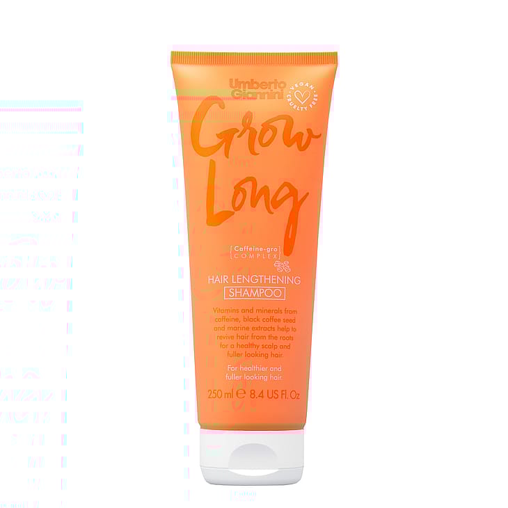 Shampoo elvyttää ja vahvistaa hiuksia, ja se on täynnä vitamiineja ja mineraaleja, jotka hoitavat sekä hiuksia että hiustuppia. Se sisältää kofeiinia, kahvipavun uutetta ja merilevää, jotka ravitsevat ja vahvistavat hiustuppeja, tehden hiuksista terveemmät ja kimmoisammat. Herneen idutteen uute vahvistaa hiusten pituuksia ja latvoja. Shampoo edistää hiusten kasvua ja pidentää hiuskieroa, luoden terveemmät, vahvemmat ja pidemmät hiukset poistamalla ylimääräistä öljyä ja likaa. Grow Long Shampoo tuoksuu miedosti vaniljalta ja kahvipavuilta.