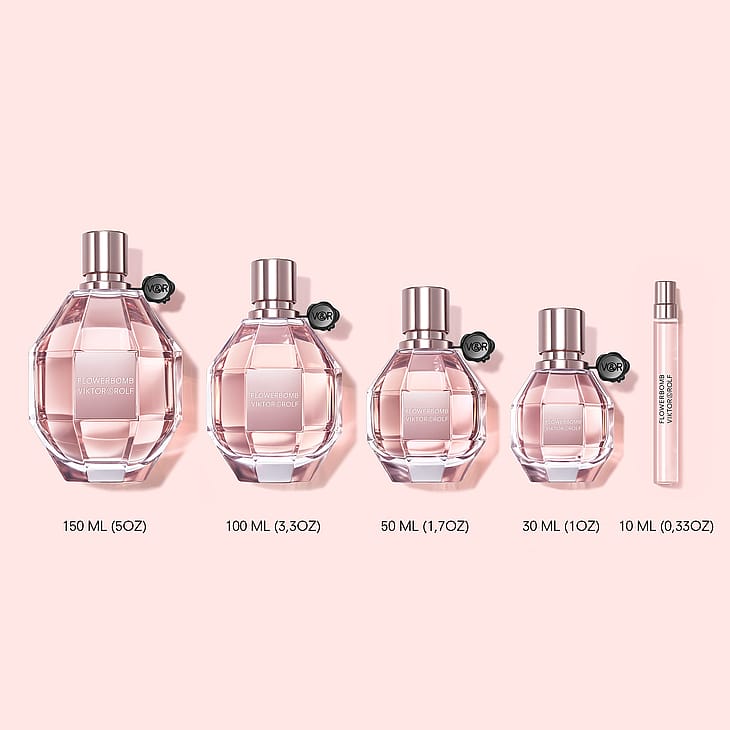 Flowerbomb on pakattu ikoniseen, vaaleanpunaista timanttia muistuttavaan fasettipulloon – täydellinen yhdistelmä voimaa ja naisellisuutta. Pehmeä vaaleanpunainen sävy symboloi feminiinisyyttä, kun taas timantin muoto tuo esiin Viktor & Rolfin näkemyksen tyylikkyyden ja voiman harmoniasta. Pullo ei ole vain tuoksun säiliö, vaan kunnianosoitus kauneuden monimuotoisuudelle.