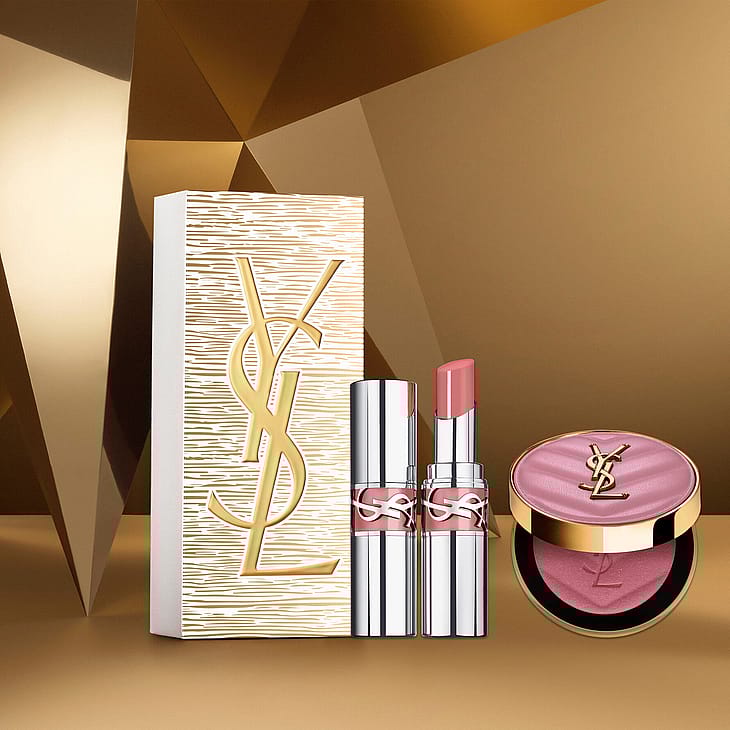 Käytä poskipunasivellintä (Yves Saint Laurent N°5 Face Brush) ja levitä Make Me Blush -poskipunaa poskipäille pyörivin liikkein, jotta saat rohkean lopputuloksen. Jos haluat kasvoja kohottavan vaikutelman, levitä meikkiä poskipäistä alkaen ja häivytä ylöspäin. Levitä Loveshine-huulipuna suoraan huulille kosteuttavaa väriä ja kiiltoa varten.